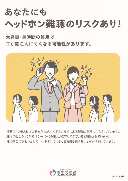 参考:厚生労働省 健康づくりサポートネット あなたにもヘッドホン難聴のリスクあり!